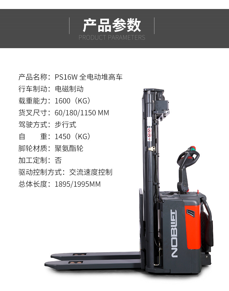 諾力PS16W 常規(guī)全電動(dòng)堆高車 堆垛車升高車 全電動(dòng)叉車 廠家直銷